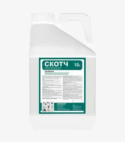 Скотч — це поверхнево-активна речовина, яка підвищує ефективність захисних засобів рослин (ЗЗР), поліпшуючи їх контакт зі шкодочинними об’єктами та зменшуючи водовідштовхувальні властивості. Цей препарат ефективно забезпечує стійкість до змивання опадами та знижує втрати через випаровування.