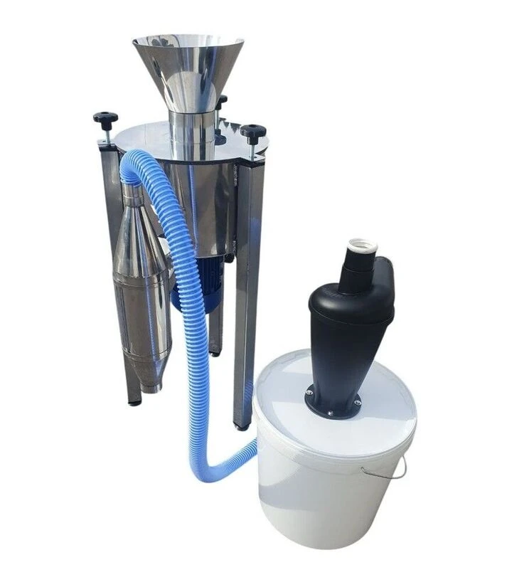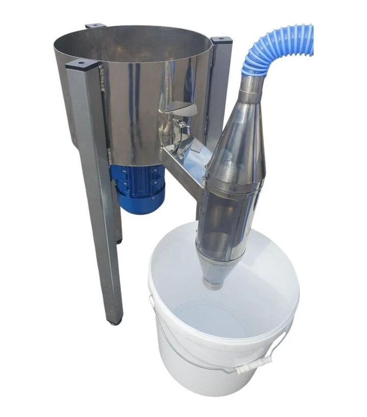 Пристрій для добування перги, з циклоном (2401) призначений для подрібнення заморожених пергових сотів і відділення перги від легших залишків у складі комплексу. «Циклон» входить у комплект і забезпечує осадження відходів у спеціальну ємність при роботі з повітряним потоком.