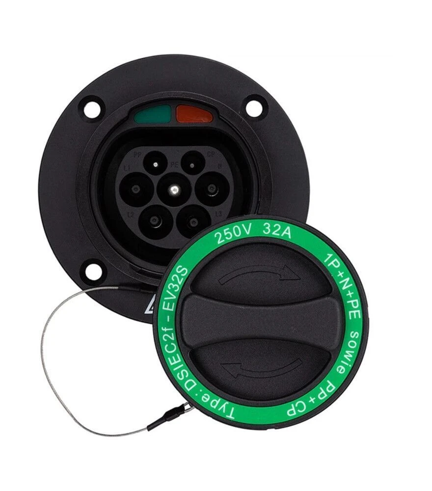 Розетка HiSmart Type 2 Mennekes (Male), 32A, 3 фази (EV200351) призначена для використання у складі зарядних станцій змінного струму європейського стандарту. Встановлюється з боку станції та забезпечує підключення електромобіля через роз’єм Type 2 із трифазною подачею живлення. Розетка розрахована на струм до 32 А і потужність до 22 кВт, має захисну конструкцію й підходить для монтажу як у приміщенні, так і на вуличних станціях за умови дотримання вимог інсталяції.