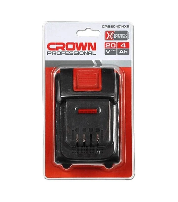 CROWN CAB204014XE - универсальная аккумуляторная батарея 20 В / 4 А·ч, обеспечивающая автономность, стабильную энергию и комфорт при длительных или энергоёмких работах.