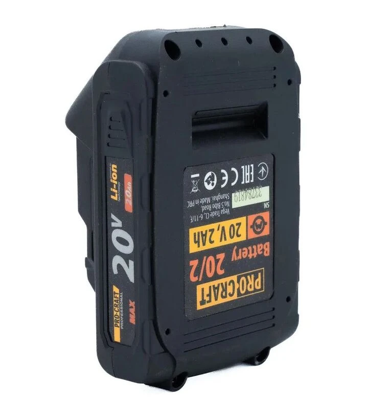 Аккумуляторная батарея ProCraft 20В на Li-Ion элементах с емкостью 2 А·ч и весом 0,4 кг подходит для инструментов платформы 20 В. Индикатор заряда и защиты от перегрева, переразряда, короткого замыкания и перезаряда делают ее практичной для регулярного использования.