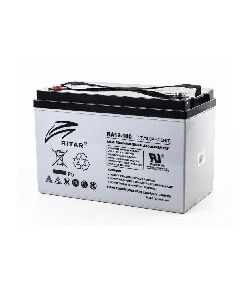 Аккумуляторная батарея Ritar AGM, 12 В, 100 A*ч используется в источниках бесперебойного питания, телекоммуникационном оборудовании, системах сигнализации и сетях аварийного освещения. Значительная емкость позволяет обеспечивать длительное время автономной работы оборудования в системах резервного или автономного электропитания.
