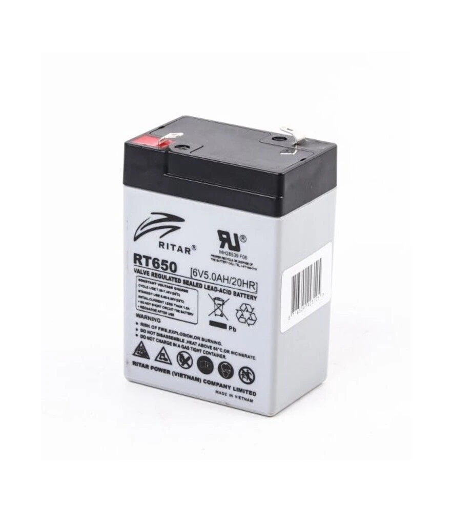 Аккумуляторная батарея Ritar AGM, 6 В, 5 A*ч (RT650) предназначена для использования в системах резервного и автономного электропитания, где необходимо обеспечить стабильную работу оборудования во время перебоев в электроснабжении. Такие батареи применяются в источниках бесперебойного питания, телекоммуникационном оборудовании, системах сигнализации, электронных устройствах безопасности и сетях аварийного освещения. Номинальное напряжение 6 В позволяет использовать батарею в широком спектре электронных систем, а емкость 5 А·ч обеспечивает достаточный запас энергии для поддержания работы оборудования.