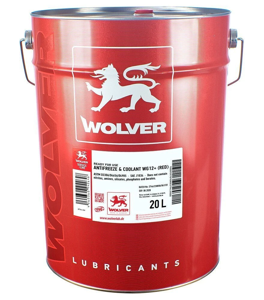 WOLVER ANTIFREEZE & COOLANT WG12+ Ready to Use - готовая к использованию высокотехнологичная охлаждающая жидкость класса G12+, предназначенная для современных бензиновых и дизельных двигателей легковой, грузовой, строительной и сельскохозяйственной техники. Основана на органической (OAT) технологии и обеспечивает длительную защиту всех элементов системы охлаждения, особенно двигателей с высокой тепловой нагрузкой и алюминиевыми компонентами.