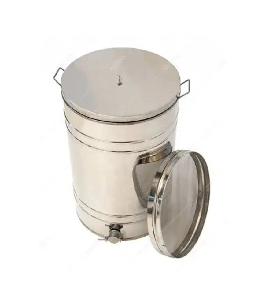 Бак-отстойник предназначен для отстаивания и фильтрации мёда при работе с большими объёмами продукции. Его используют после откачки для очистки мёда от мелких механических примесей и воздушных включений перед фасовкой или хранением. Ёмкость изготовлена из пищевой нержавеющей стали, устойчивой к воздействию органических кислот и сахаров, что позволяет сохранять природные свойства мёда без изменений. Конструкция рассчитана на интенсивную эксплуатацию в условиях пасеки или медового цеха.