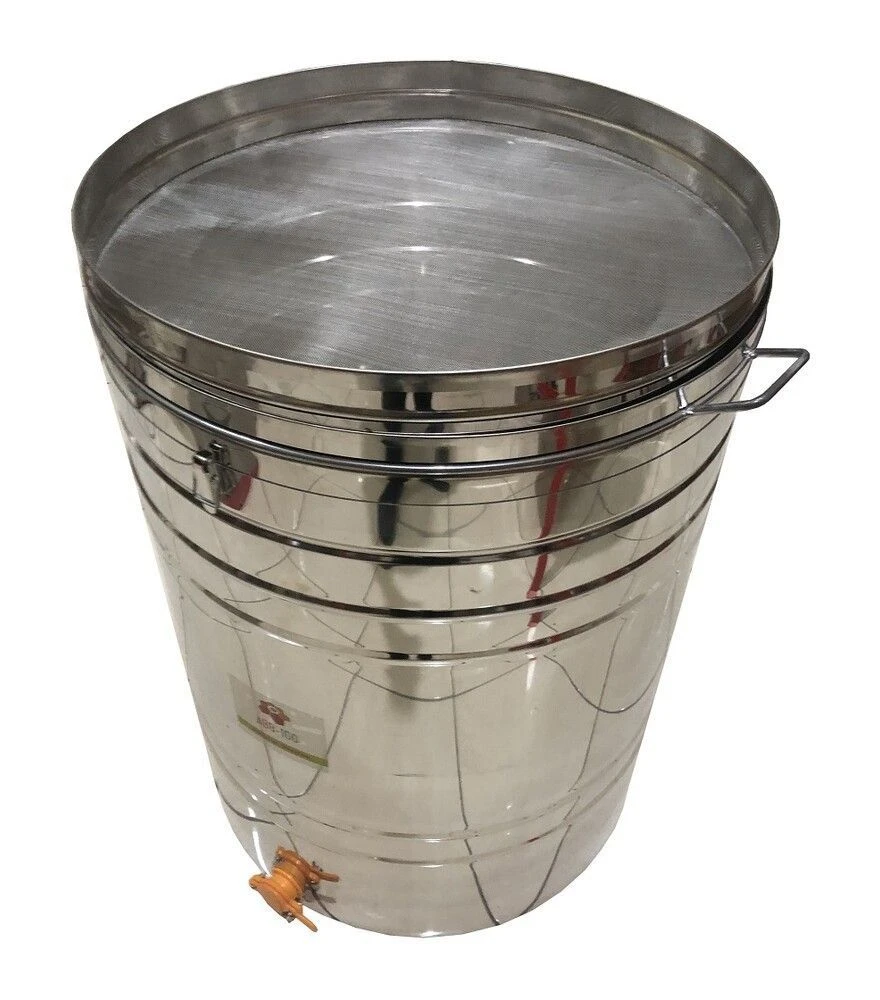 Бак-отстойник предназначен для отстаивания и фильтрации мёда при работе с большими объёмами продукции. Его используют после откачки для очистки мёда от механических примесей и воздушных пузырьков перед фасовкой или дальнейшим хранением. Ёмкость изготовлена из пищевой нержавеющей стали, безопасной для контакта с продуктами пчеловодства и устойчивой к воздействию органических кислот и сахаров. Конструкция рассчитана на интенсивное использование в условиях пасеки или производственного помещения.
