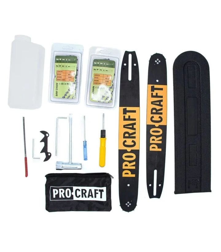 Procraft GS-58X отличается компактностью и манёвренностью, что делает её удобной для ежедневных работ в частном хозяйстве. Высокая скорость протяжки обеспечивает качественное пиление, а две шины в комплекте позволяют настроить инструмент под конкретную задачу. Автоматическое смазывание и тормоз цепи делают эксплуатацию пилы более комфортной и безопасной.