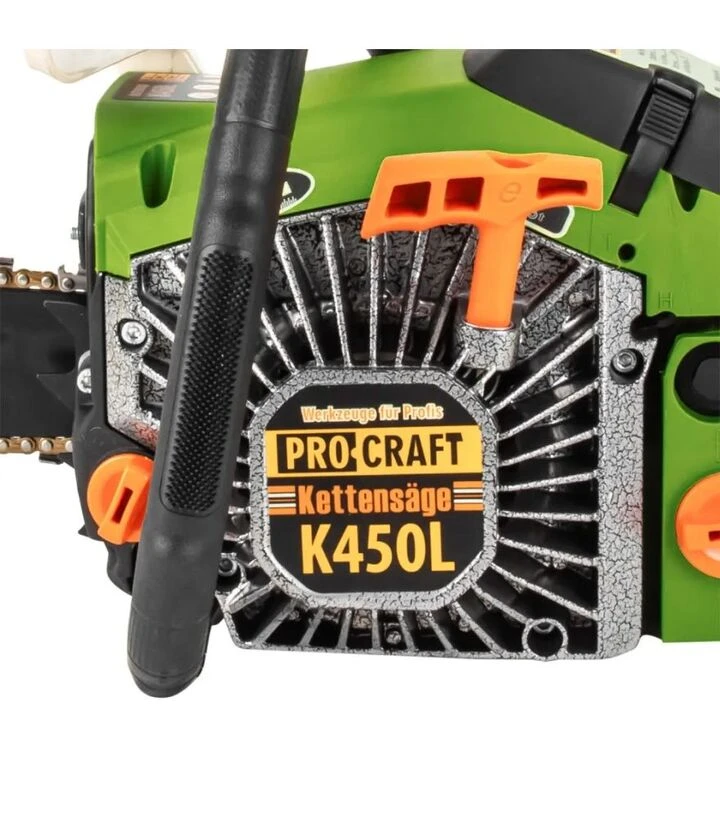 Procraft K-450L - это удобное решение для тех, кто ищет мощную бензопилу для ежедневного использования в хозяйстве.