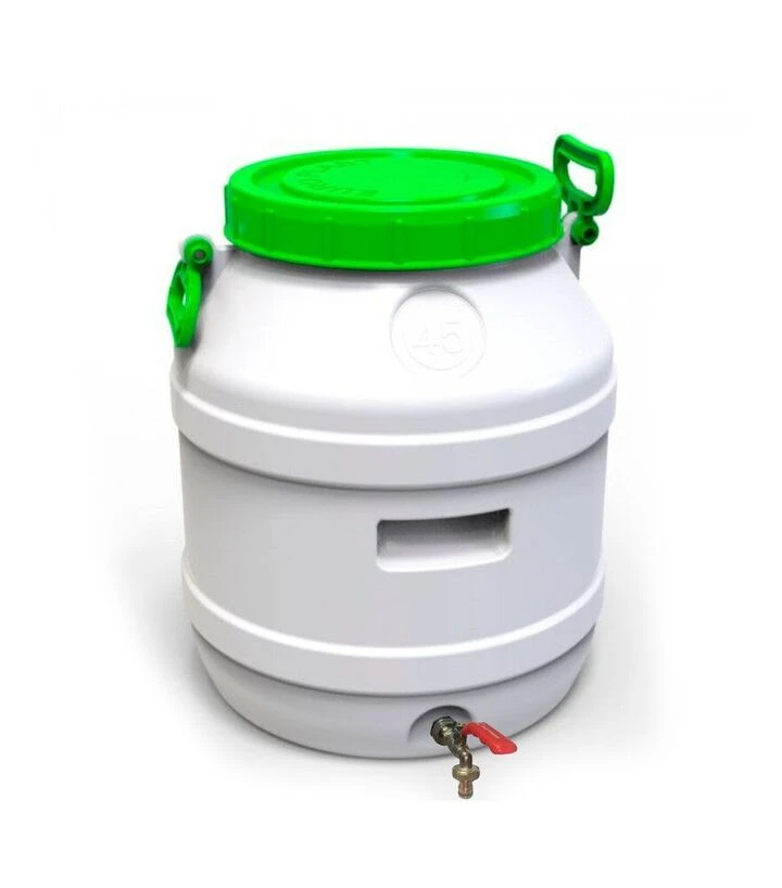Отзывы Бидон пищевой Европласт 45 л, с латунным краном, зеленая крышка (173314)
