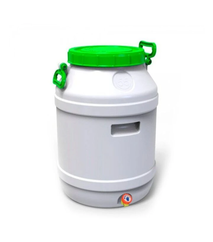 Бидон пищевой Европласт 55 л, с вентильным краном, зеленая крышка (172761)