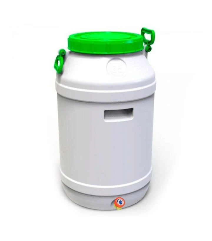 Бидон пищевой Европласт 65 л, с вентильным краном, зеленая крышка (172582)