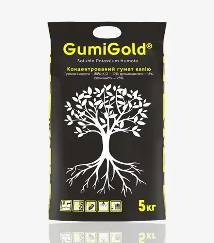 GumiGold — высокоэффективное сухое удобрение на основе гумата калия со свойствами стимулятора роста и антистрессанта. Этот концентрат предназначен для корневой и внекорневой подкормки всех видов сельскохозяйственных культур, повышая их урожайность и качество.