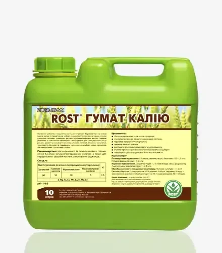 Rost Гумат Калия – это органическое удобрение и стимулятор роста, созданный на базе натурального гумата калия. Содержит комплекс гуминовых, фульво- и гиматомелановых кислот, которые активизируют жизненные процессы в растениях, улучшая их развитие и продуктивность.