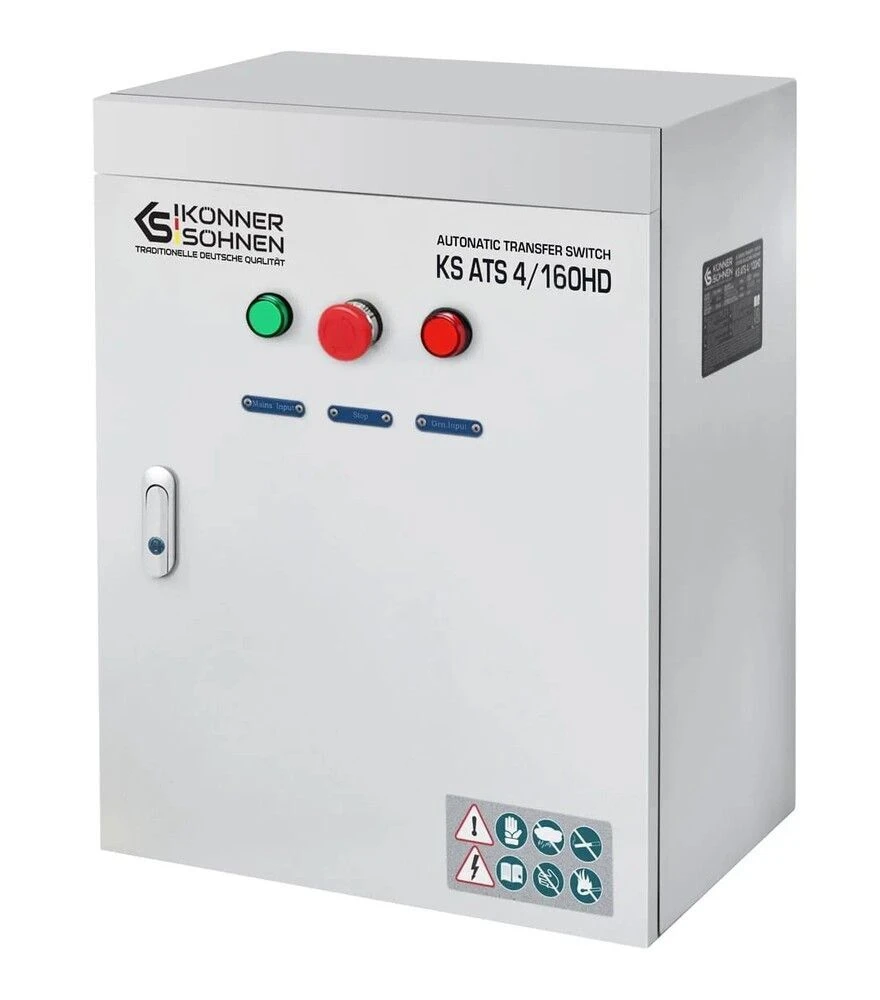 Konner&Sohnen KS ATS 4/160HD используется в системах резервного электропитания для автоматического управления генераторными установками. Устройство контролирует состояние электросети и запускает генератор в случае исчезновения напряжения. После восстановления электроснабжения блок возвращает нагрузку на основную сеть.