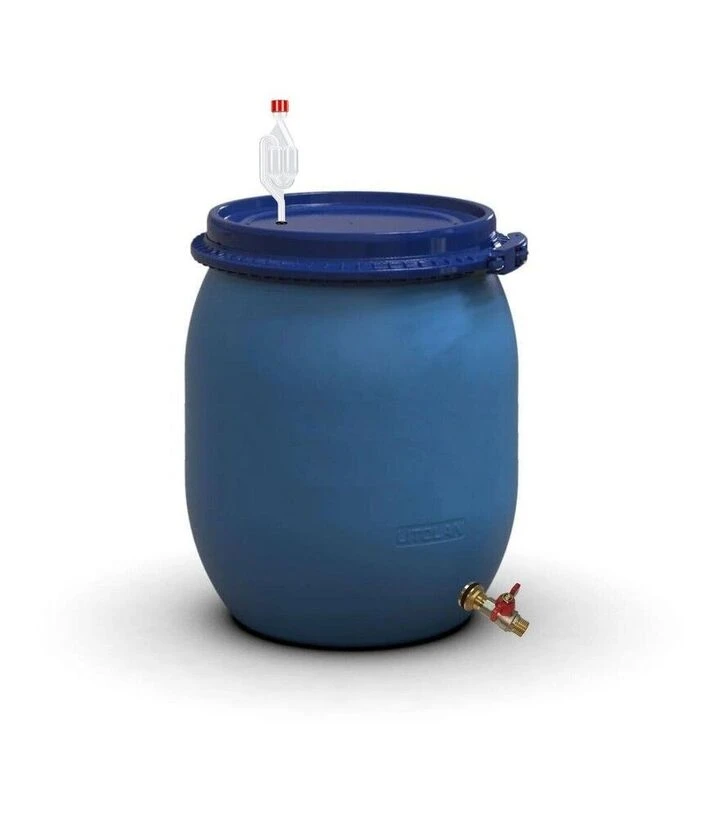 Во время брожения внутри бочки образуется углекислый газ, который выводится через S-образный винный клапан. Двухкамерный гидрозатвор обеспечивает контролируемый выход газов и одновременно предотвращает попадание кислорода внутрь ёмкости. Это позволяет поддерживать стабильные условия ферментации и сохранять вкус и аромат напитка. Крышка устанавливается с уплотнителем и фиксируется хомутом, что гарантирует герметичность. Для удобного слива готового продукта бочка оснащена латунным сливным краном 1/2".