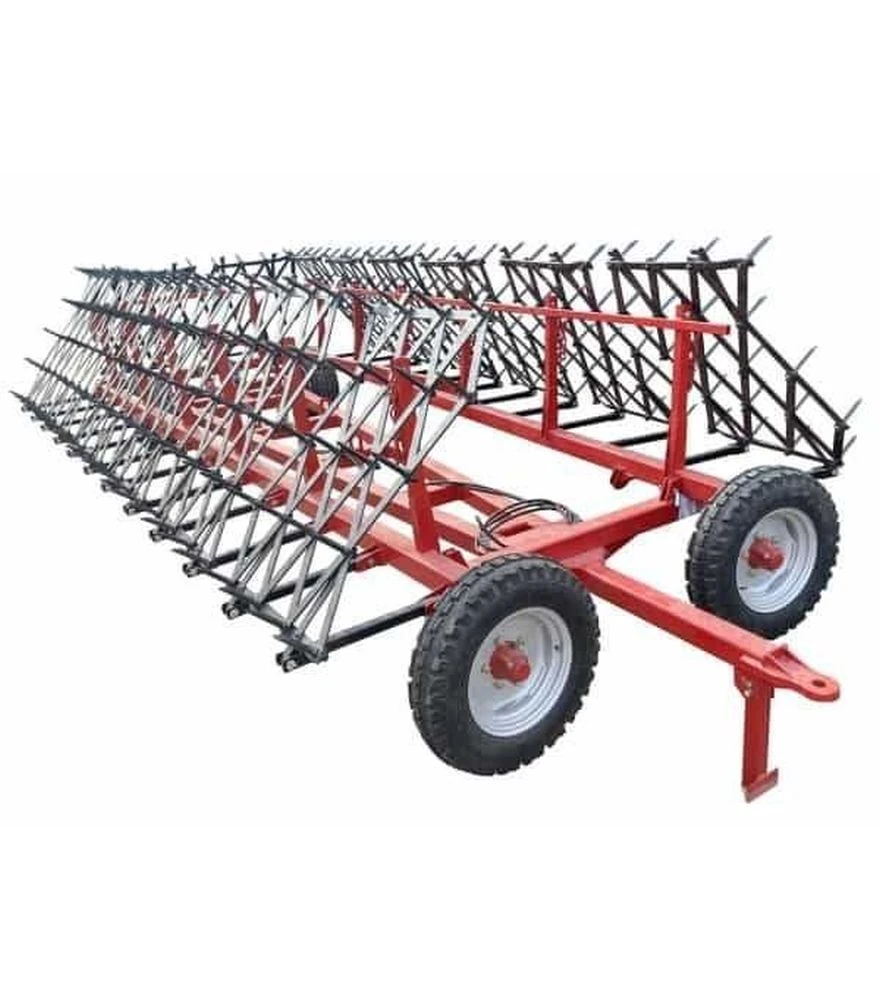 Борона зубовая, Сцепка БГ-14 Зубовая борона БГ-14 - это прицепная сцепка с шириной захвата 14 м, предназначенная для поверхностной обработки почвы на глубину до 8 см. Агрегат применяется для рыхления верхнего слоя, выравнивания поля, заделки влаги и разрушения почвенной корки. Работает с тракторами мощностью от 80 л.с., обеспечивает производительность до 9 га/ч при рабочей скорости 9 км/ч. Состоит из 14 секций, которые адаптируются к рельефу поля для равномерной обработки. Борона БГ-14 изготовлена с учётом требований к широкозахватной технике для предпосевной подготовки и ухода за посевами. Надёжная конструкция позволяет использовать агрегат в хозяйствах с интенсивным режимом полевых работ.