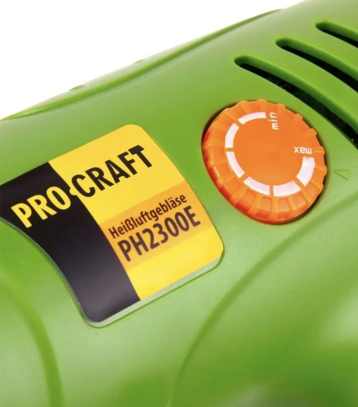 ProCraft PH-2300E - это мощный и универсальный строительный фен, который идеально подойдёт для тех, кто часто выполняет ремонтные или строительные работы. Он упрощает задачи нагрева, удаления старых покрытий, монтажных операций, пайки и размягчения клеёв и герметиков, а также помогает выполнять деликатные работы без риска повреждения обрабатываемых поверхностей. Благодаря своей мощности, функциональности и продуманному дизайну данный строительный фен станет незаменимым инструментом в арсенале любого мастера или домашнего умельца.