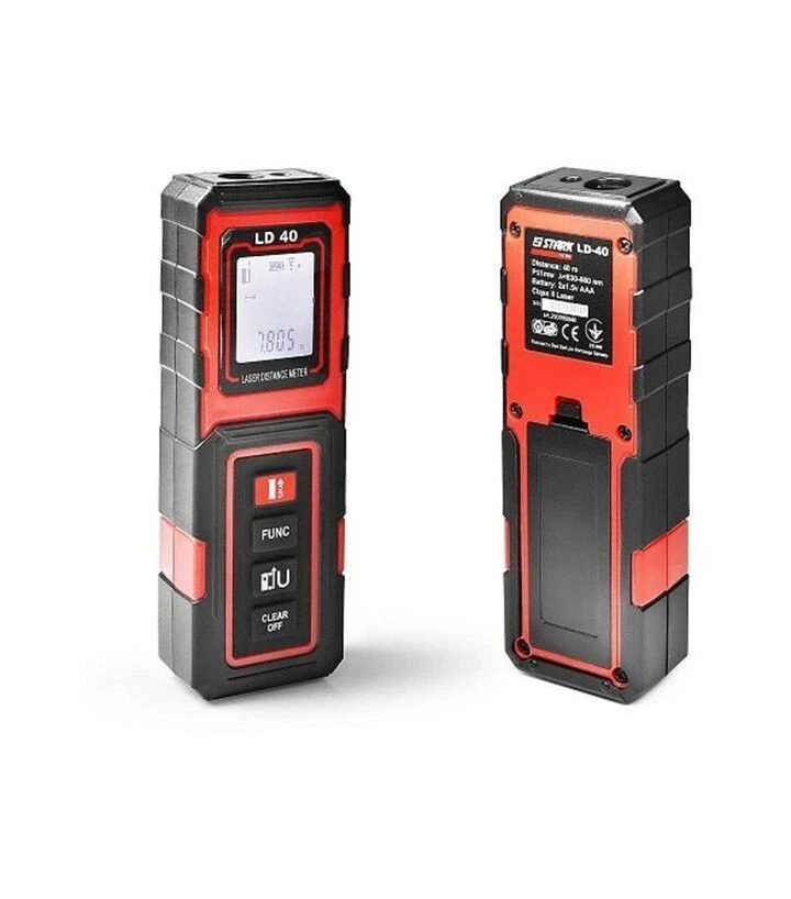Лазерный дальномер STARK LD-40 предназначен для точного измерения расстояний в помещениях и на небольших рабочих площадках. Диапазон измерения составляет 0,03–40 м, а точность - ±2 мм, что позволяет использовать его для монтажных, отделочных и бытовых работ. Устройство работает от двух батареек AAA, имеет компактный корпус и комплектуется чехлом для удобного хранения и транспортировки. Лазер класса 2 с длиной волны 635 нм обеспечивает чёткий луч для точного наведения.