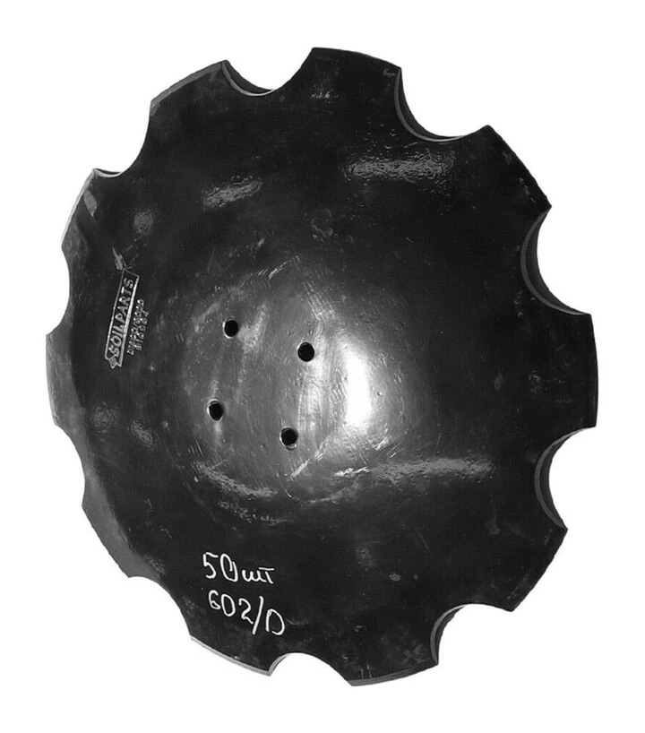 Диск бороны типа «ромашка» диаметром 510 мм предназначен для установки на дисковые бороны техники Farmet и Калина и используется для обработки почвы, измельчения пожнивных остатков и подготовки поля к посеву. Благодаря волнистой форме режущей кромки диск активно захватывает растительные остатки, эффективно их измельчает и равномерно перемешивает с почвой. Такая форма позволяет улучшить структуру посевного слоя и повысить качество обработки поля. Диаметр 510 мм обеспечивает стабильную работу на различных типах почв, а толщина 5 мм позволяет выдерживать нагрузки при ежедневной эксплуатации. Конструкция с четырьмя отверстиями обеспечивает точное крепление диска и равномерное распределение нагрузки во время работы.