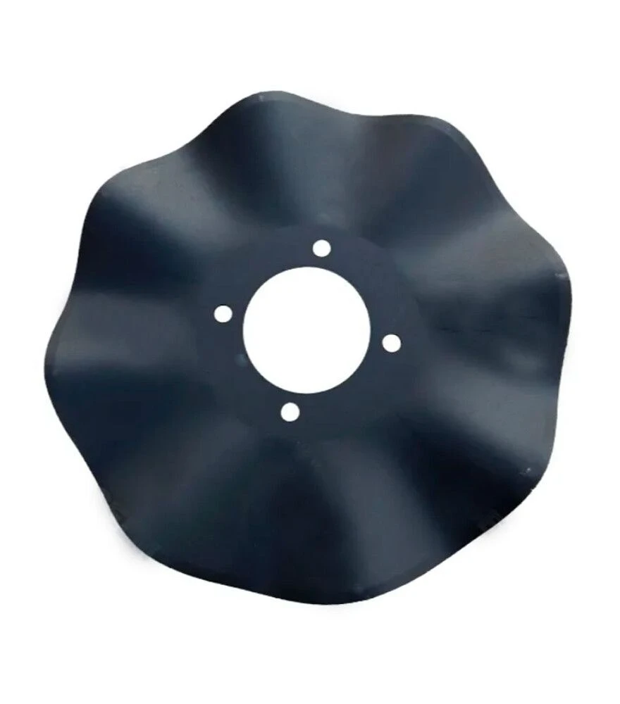 Диск имеет волнистую форму с восемью волнами, что обеспечивает эффективное разрезание пожнивных остатков и легкое проникновение в верхний слой почвы. Изготовлен из борированной стали, которая сочетает прочность и устойчивость к истиранию во время длительной эксплуатации.