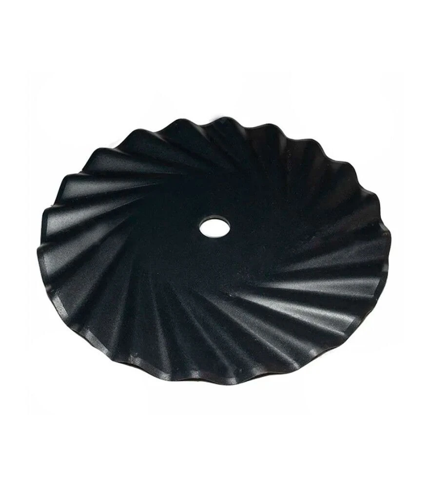 Диск изготовлен из борированной стали и имеет волнистую турбо-форму, что обеспечивает активную работу в верхнем слое почвы. Конструкция способствует эффективному разрезанию пожнивных остатков и стабильному вращению во время работы агрегата.