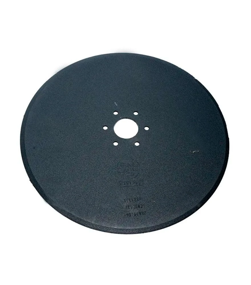 Диск изготовлен из борированной стали и имеет гладкую рабочую поверхность, что обеспечивает стабильное разрезание почвы во время посева. Конструкция с шестью отверстиями позволяет надёжно устанавливать диск в узле сошника и поддерживать стабильную работу посевной системы.