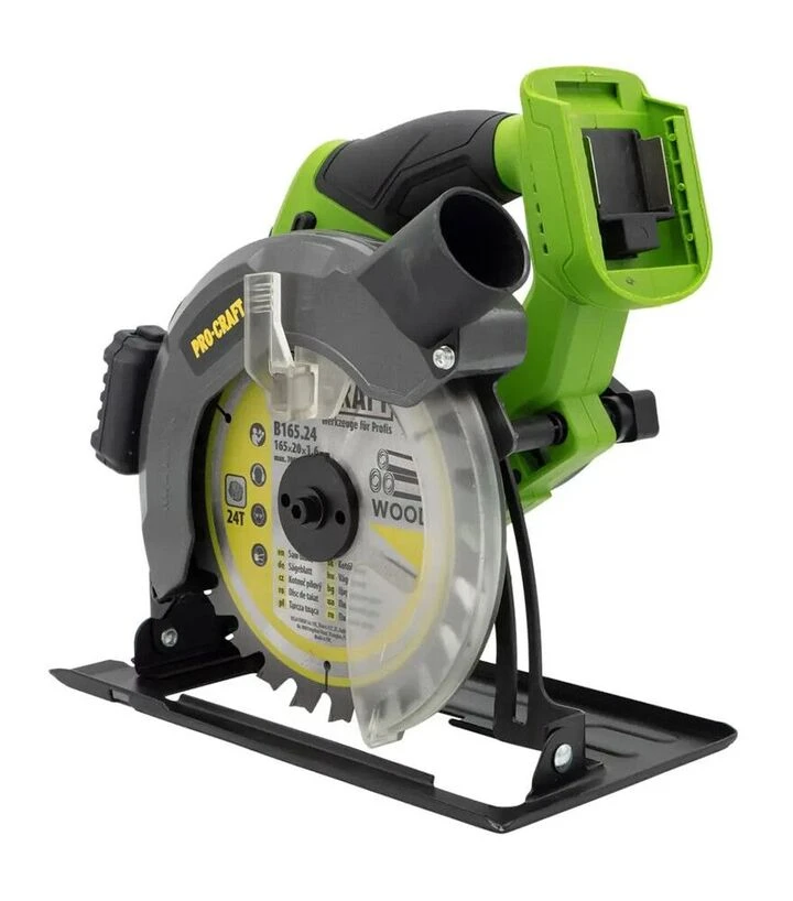 ProCraft PCA-28 - аккумуляторная дисковая пила на 20 В для прямого раскроя листовых материалов и заготовок из дерева. Пила работает с диском 165×1,6×20 мм и развивает 4500 об/мин, что подходит для быстрого реза. Глубина пропила до 55 мм позволяет работать с доской и брусом типовых размеров. Угол реза регулируется в диапазоне 0–56°, поэтому инструмент удобен для косых резов. Подсветка и лазер помогают лучше видеть линию реза и контролировать направление во время работы.