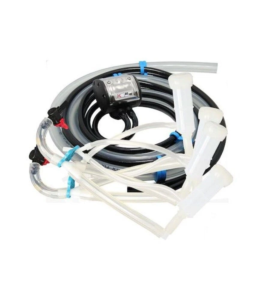 Аппаратура имеет герметичные соединения шлангов, что обеспечивает стабильный вакуум во время работы. Прозрачные стаканы позволяют контролировать процесс доения, а силиконовые вкладыши сохраняют форму и эластичность при регулярном использовании. Пульсатор работает в попарном режиме.