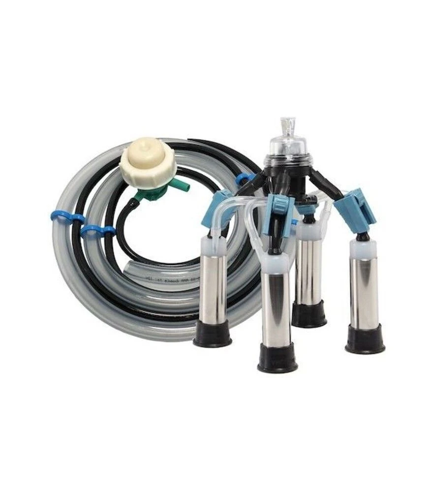 Доильная аппаратура "комби" предназначена для использования в составе индивидуального доильного аппарата для коров в частных и фермерских хозяйствах. Комплект оснащён комбинированными стаканами, которые сочетают нержавеющий металлический корпус и прозрачные полипропиленовые оголовники. В состав входят стандартный коллектор объёмом 140 см3, пульсатор, молочный и вакуумный шланги. Все элементы согласованы между собой для стабильной работы в вакуумной системе и подходят для подключения к большинству доильных установок.