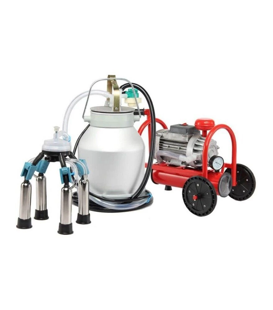 Доильный аппарат "Буренка-1 макси" сухойДоильный аппарат "Буренка-1 макси" сухой предназначен для эксплуатации в бытовых условиях и обслуживания от 1 до 5 коров. Оснащён сухим пластинчато-роторным вакуумным насосом со скоростью вращения 3000 об/мин и электродвигателем мощностью 1100 Вт. Модель комплектуется блоком защиты насоса от попадания молока и воды, алюминиевым молочным баком, нержавеющими стаканами, алюминиевой крышкой и увеличенным коллектором 240 см3. Рассчитан на одновременное доение одной коровы с ориентировочным временем 6–8 минут.