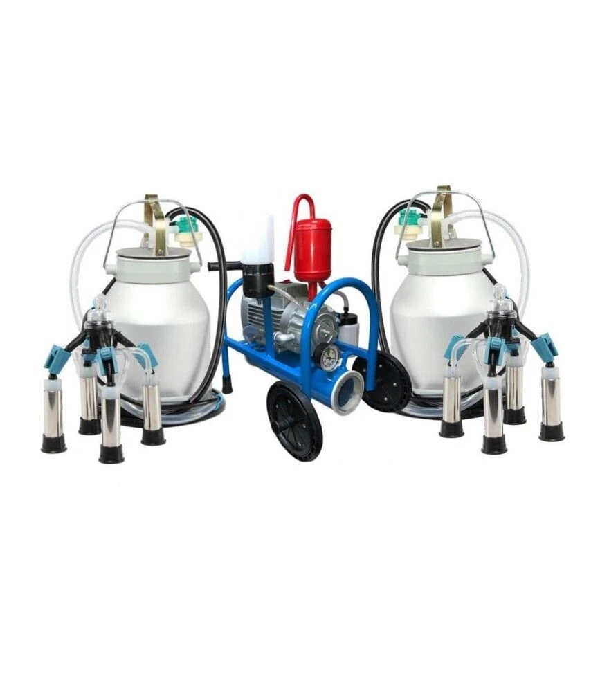 Доильный аппарат "Буренка-2 комби" масляныйДоильный аппарат "Буренка-2 комби" масляный предназначен для обслуживания от 1 до 20 коров в час в бытовых и фермерских хозяйствах. Оснащён вакуумным насосом масляного пластинчато-роторного типа со скоростью вращения 3000 об/мин, установленным на металлическом каркасе с ресивером. Комплектуется двумя алюминиевыми молочными вёдрами по 20 литров, комбинированными нержавеющими стаканами с полипропиленовыми оголовниками, полипропиленовыми крышками и стандартными коллекторами 140 см3. Рассчитан на одновременное доение двух коров.