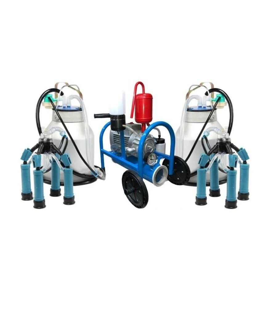 Доильный аппарат "Буренка-2 стандарт" масляныйДоильный аппарат "Буренка-2 стандарт" масляный предназначен для обслуживания от 1 до 20 коров в час в бытовых и фермерских хозяйствах. Оснащён вакуумным насосом масляного пластинчато-роторного типа со скоростью вращения 3000 об/мин, установленным на металлическом каркасе с ресивером. Комплектуется двумя алюминиевыми молочными вёдрами по 20 литров, полипропиленовыми доильными стаканами, полипропиленовыми крышками и стандартными коллекторами объёмом 140 см3. Рассчитан на одновременное доение двух коров.