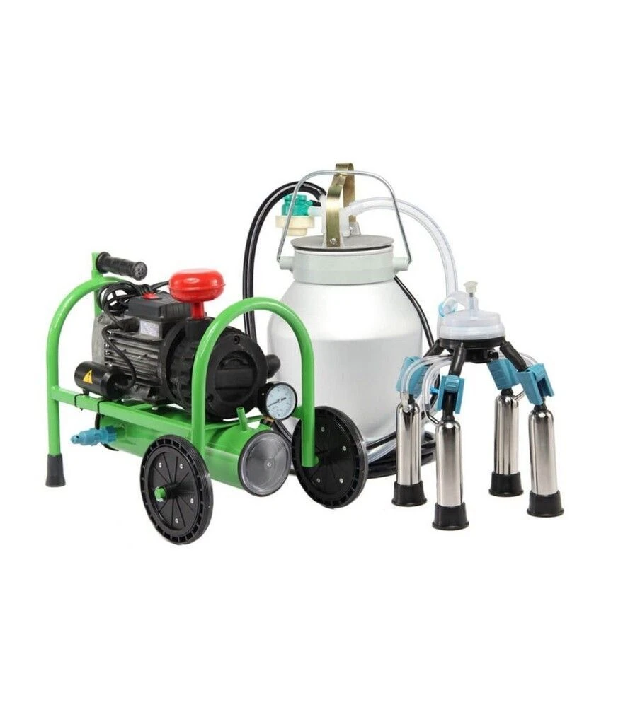 Доильный аппарат "Коровка-1 макси с блоком защиты насоса 1500" сухойДоильный аппарат "Коровка-1 макси с блоком защиты насоса 1500" сухой предназначен для использования в бытовых условиях и в фермерских хозяйствах с поголовьем от 1 до 10 коров. Оснащён вакуумной установкой сухого пластинчато-роторного типа со скоростью вращения 1500 об/мин и дополнительным блоком защиты насоса от попадания молока и воды. В комплект входит алюминиевое молочное ведро 20 литров, нержавеющие доильные стаканы, алюминиевая крышка и увеличенный коллектор объёмом 240 см3. Конструкция рассчитана на стабильную ежедневную эксплуатацию.