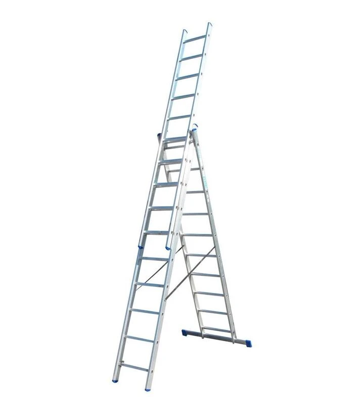 Раскладная лестница ELKOP VHR H 3*10 - это универсальная трёхсекционная модель, предназначенная для выполнения различных работ на высоте. В сложенном состоянии лестница имеет длину 2,7 м, а в разложенном - 6,1 м, что позволяет достигать рабочей высоты до 6,8 м. Три секции обеспечивают несколько вариантов использования: как приставная, раскладная или в режиме помоста. Прочная алюминиевая конструкция сочетает лёгкость, устойчивость к коррозии и удобство в ежедневной эксплуатации. Общее количество ступеней - 30, что гарантирует безопасный и комфортный подъём.