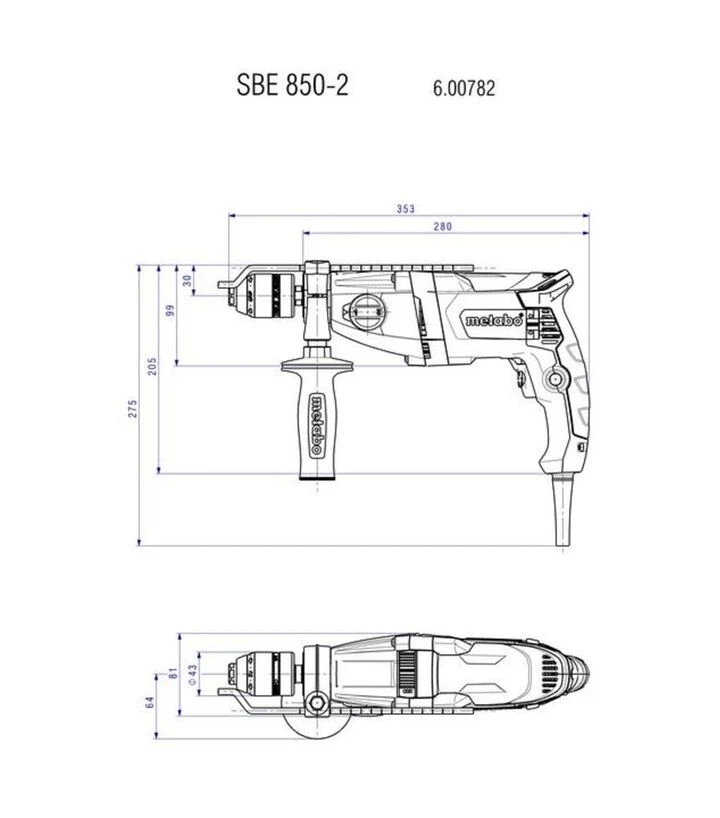 Metabo SBE 850-2 с ключевым патроном и кейсом - это универсальный инструмент, который сочетает необходимую мощность, ударную функцию и продуманную эргономику. Это делает его удобным выбором для пользователей, ищущих надёжную дрель для ежедневного применения в быту и на объекте, где важна стабильная работа, точность и долговечность инструмента.