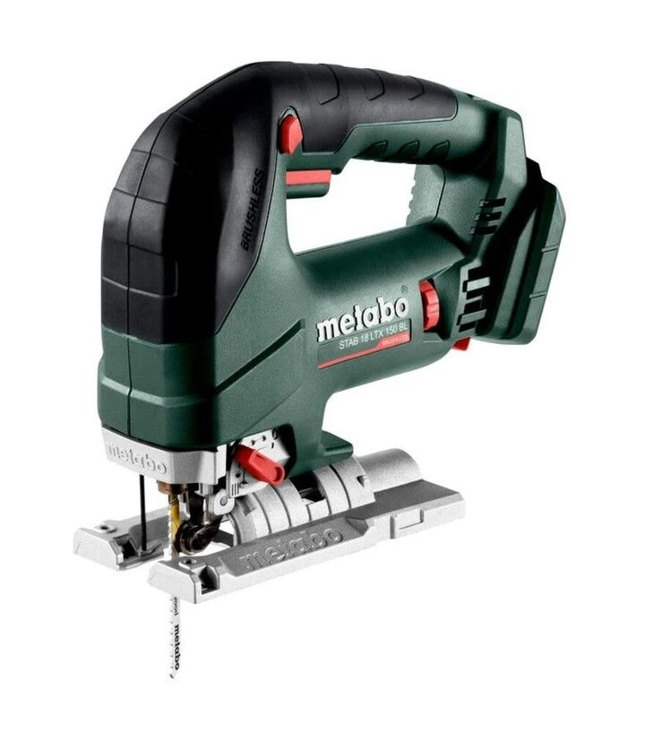 Metabo STAB 18 LTX 150 BL - аккумуляторный электролобзик для сложных резов в древесине, стали и цветных металлах. Оснащен бесщеточным двигателем и работает от аккумуляторной системы 18 В. Обеспечивает глубину резания древесины до 150 мм и стали до 10 мм, что позволяет работать с массивными заготовками и конструкционными элементами. Частота ходов регулируется в пределах 1000–3500 /мин, а ход полотна 26 мм обеспечивает высокую скорость резания даже под нагрузкой.