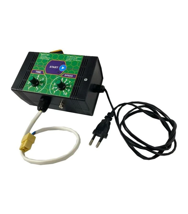Электродвигатель мощностью 100 Вт передаёт вращение на редуктор медогонки, который формирует необходимый крутящий момент для равномерного вращения ротора. Скорость оборотов регулируется блоком управления, что позволяет подобрать оптимальный режим работы в зависимости от количества и заполнения рамок. Редуктор снижает нагрузку на механические элементы и обеспечивает стабильный ход.
