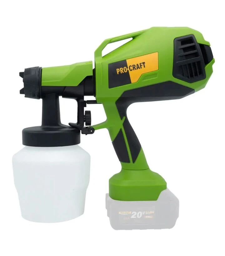 Аккумуляторный краскопульт ProCraft PSE-30 - это компактное устройство, работающее от аккумулятора (аккумулятор и зарядное устройство в комплект не входят). Он предназначен для нанесения краски, лака и других жидких декоративных или защитных покрытий в помещении и на открытом воздухе. Благодаря мобильности и автономному питанию краскопульт можно использовать в любых местах без привязки к розетке. Устройство оснащено двумя сменными соплами диаметром 2 и 2,5 мм, которые позволяют адаптировать размер факела под тип распыляемого материала и желаемый результат. Нижнее расположение ёмкости обеспечивает стабильную подачу жидкости, а воздушный способ распыления формирует однородное покрытие без пропусков и подтёков.