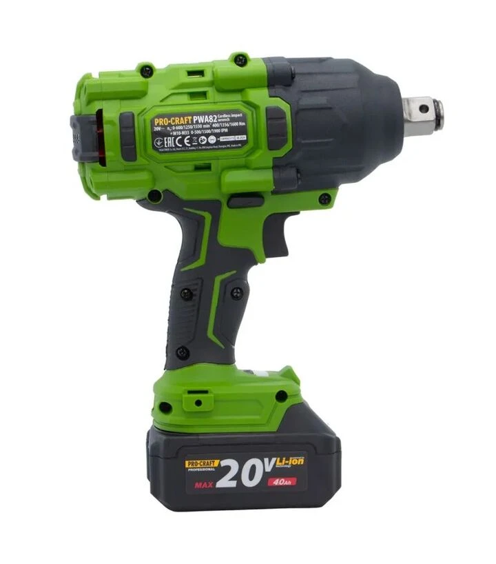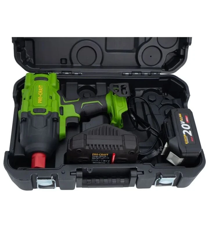 Аккумуляторный гайковёрт Procraft PWA-82 в кейсе (030082) Procraft PWA-82 - мощный аккумуляторный гайковёрт с максимальным крутящим моментом 1600 Нм, рассчитанный на тяжёлые монтажные и демонтажные работы. В комплект входит Li-Ion аккумулятор 20 В 4 А·ч и пластиковый кейс для удобной транспортировки и хранения. Инструмент оснащён бесщёточным двигателем, который снижает износ и обеспечивает стабильную производительность. Патрон квадрат 3/4"" (19 мм) подходит для работы с крупногабаритными ударными головками. ProCraft - бренд, создающий надёжный инструмент для ежедневного использования. Его продукция сочетает высокую мощность, практичность и простое обслуживание.