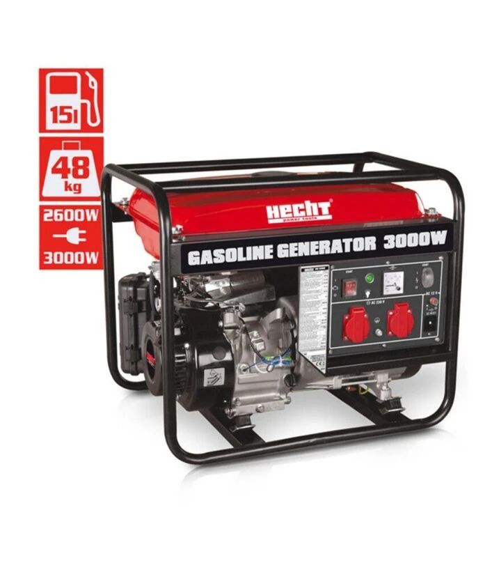 HECHT GG 3300 - надёжный однофазный генератор для стабильного электроснабжения. Сочетает в себе достаточную мощность, выносливый двигатель, большой бак и простую эксплуатацию. Станет полезным в хозяйстве, на даче или в полевых условиях, где требуется питание электроприборов без доступа к сети.