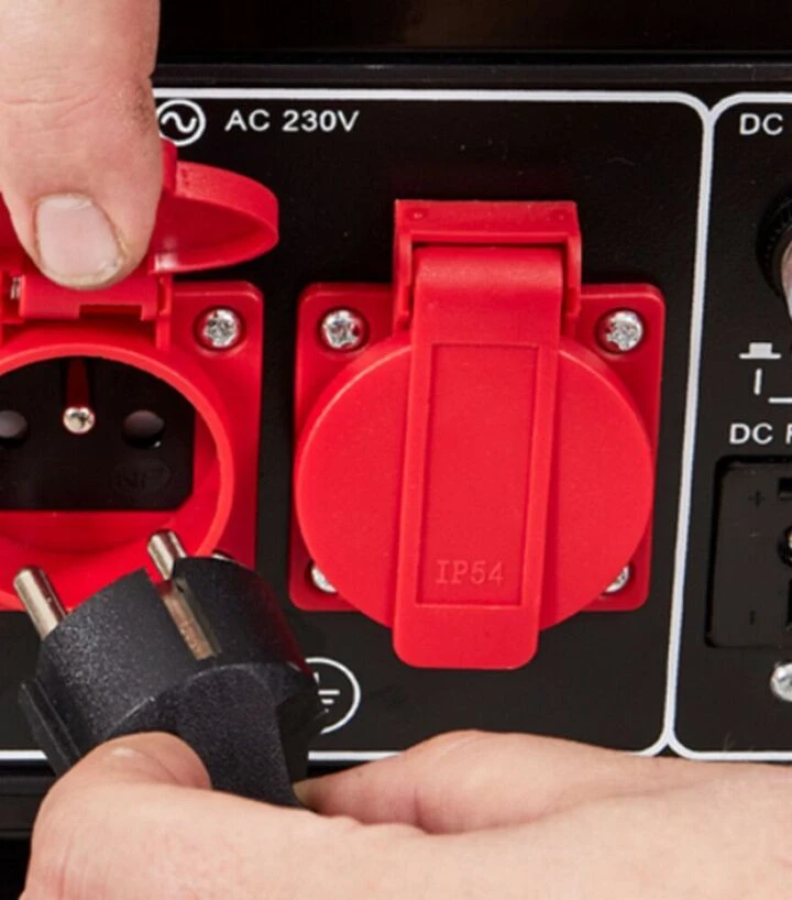 - Выходы на 230 В и 12 В - стандартная розетка и дополнительный выход для зарядки аккумуляторов или работы с автооборудованием