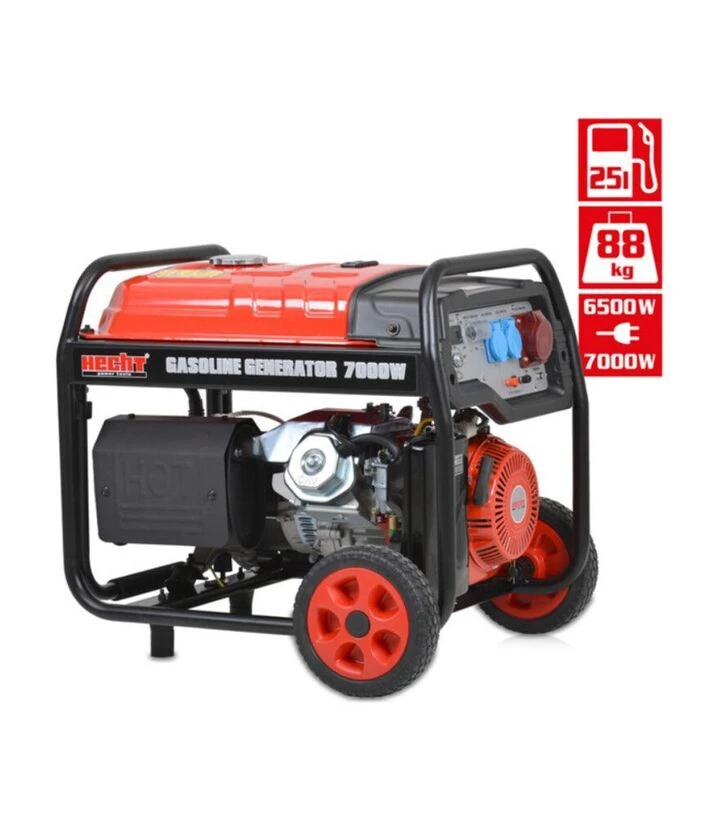 Бензиновый генератор HECHT GG 8000, трёхфазныйHECHT GG 8000 - мощный трёхфазный бензиновый генератор профессионального класса с номинальной мощностью 6,5 кВт. Подходит для питания как однофазной, так и трёхфазной техники. Оснащён выходами на 230 В, 400 В и 12 В, что позволяет подключать как стандартные бытовые приборы, так и оборудование с высоким энергопотреблением. Имеет медную обмотку генератора, 4-тактный бензиновый двигатель объёмом 420 см³, топливный бак на 25 литров и обеспечивает до 12 часов автономной работы. Присутствуют три типа розеток: две Schuko 230В/16А, одна 400В/16А, разъём 12В/8,3А для аккумуляторов. Подходит для интенсивной работы на строительных площадках, станциях обслуживания, фермах или в других условиях, где требуется высокая мощность и стабильное питание.Бренд Hecht (Чехия) производит технику для индивидуального и профессионального использования. Продукция рассчитана на длительную эксплуатацию, проста в уходе и не требует специальных навыков для обслуживания.