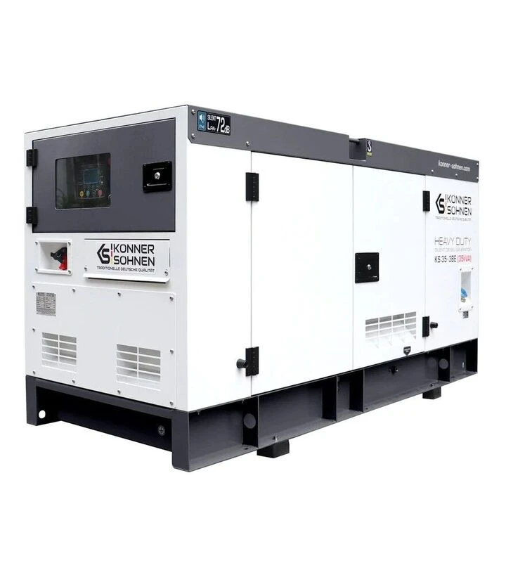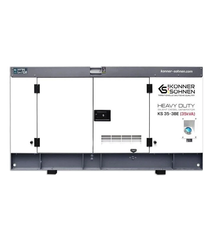 Генератор дизельный Könner&Söhnen KS 35-3BE предназначен для автономного или резервного электроснабжения объектов с трехфазной электросетью. Генератор используется на предприятиях, в фермерских хозяйствах, складских помещениях, мастерских или на строительных объектах. Оборудование формирует трехфазное напряжение 400 В с частотой 50 Гц, что соответствует стандартным параметрам промышленных электросетей. Номинальная мощность генератора составляет 25,6 кВт, что позволяет обеспечивать электропитание различного оборудования, инструментов и систем освещения. Дизельный четырехтактный двигатель рассчитан на стабильную работу при длительных нагрузках. Жидкостная система охлаждения поддерживает стабильную температуру двигателя во время эксплуатации. Синхронный альтернатор с медной обмоткой обеспечивает стабильную генерацию электроэнергии. Система автоматической стабилизации напряжения AVR поддерживает стабильные параметры напряжения для подключенного оборудования. Генератор оснащен LED-дисплеем для контроля параметров работы.