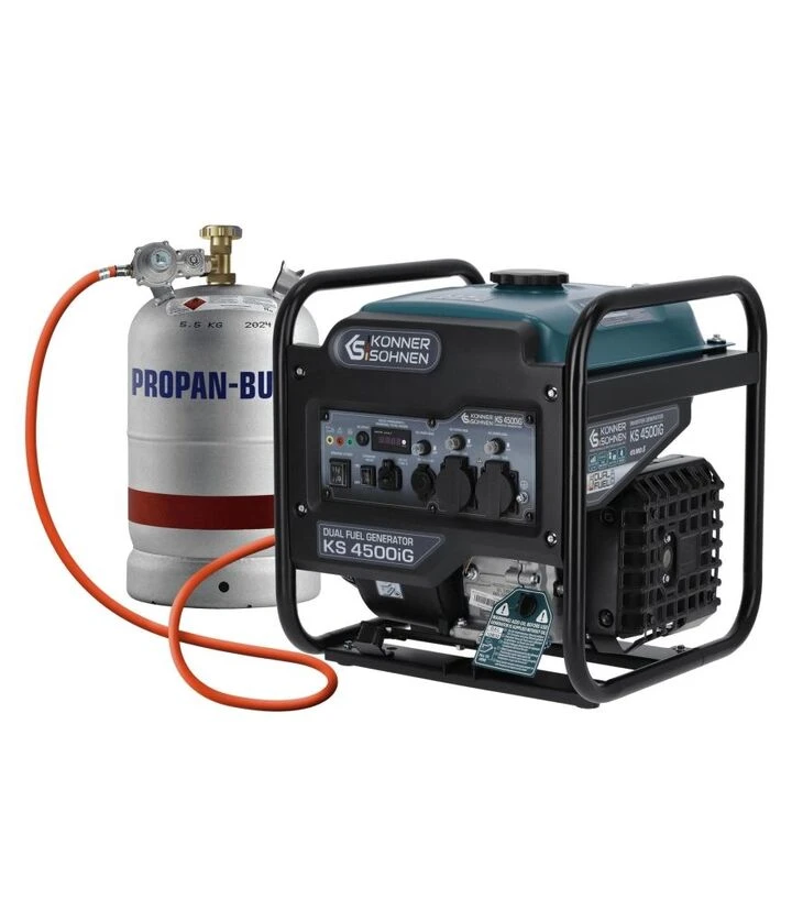 Konner&Sohnen KS 4500iG - инверторный генератор, работающий на бензине или газе, предназначен для стабильного электропитания в бытовых и коммерческих условиях. Номинальная мощность 4.2 кВт, выходное напряжение 230 В и частота 50 Гц позволяют подключать широкий спектр техники. Компактная конструкция с воздушным охлаждением и ручным запуском обеспечивает мобильность и экономичную работу. Инверторная технология подает чистое напряжение без перепадов, что важно для чувствительной электроники.