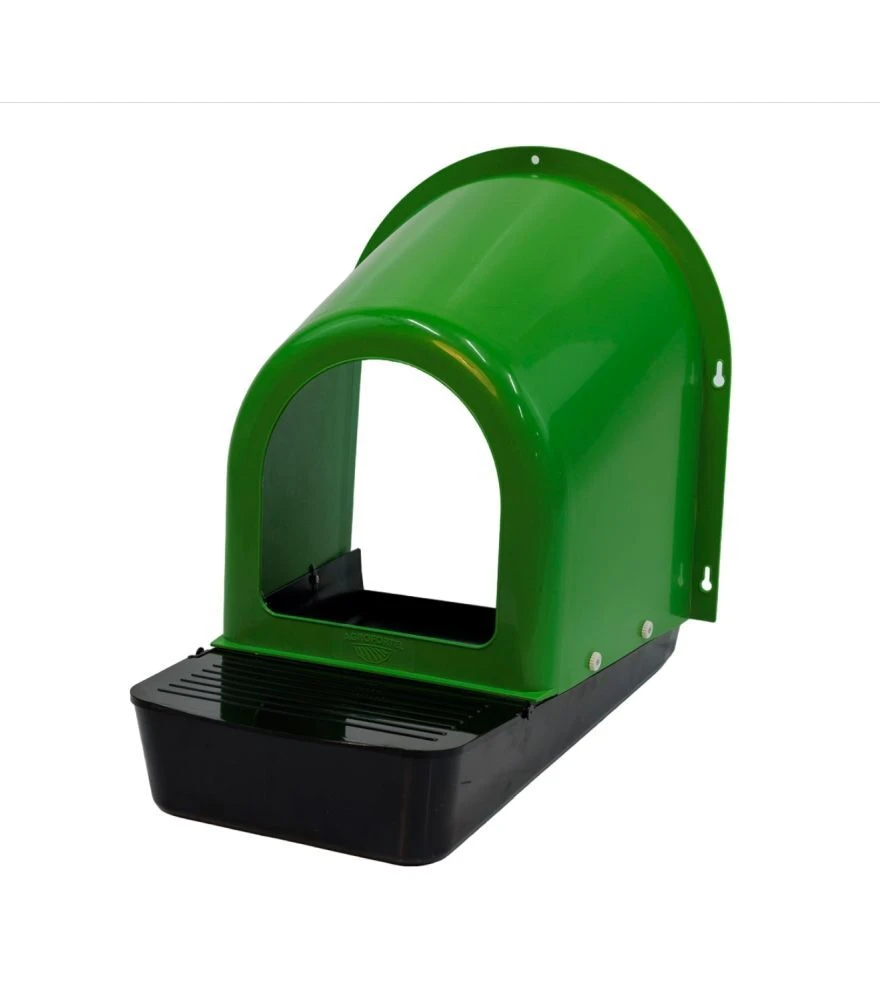 Гнездо легко закрепляется на вертикальную поверхность. Размеры: 475×370×255 мм. Рекомендуется размещать в затененном уголке курятника для удобства кур.