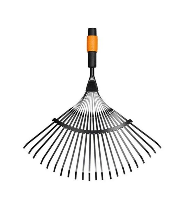 Грабли для уборки листьев 22 зубца Fiskars QuikFit - это сменная насадка для системы инструментов QuikFit, предназначенная для сбора листьев, травы и лёгких растительных остатков на приусадебных участках, в садах или на газонах. Веерообразная форма с широким захватом позволяет быстро обрабатывать большие площади. Гибкие зубцы из стали пружинят во время работы, что помогает эффективно собирать листья и не повреждать поверхность газона. Лёгкая конструкция снижает нагрузку при длительной работе. Насадка легко устанавливается на рукоятки системы QuikFit и может использоваться с различными типами черенков этой линейки.