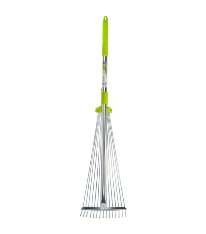 Грабли имеют металлическую рабочую часть с 15 зубьями, что обеспечивает оптимальную площадь захвата. Телескопическая рукоятка позволяет корректировать длину, делая процесс уборки комфортным для разных пользователей. Сочетание алюминия и пластика снижает вес инструмента и повышает стойкость к коррозии. Конструкция рассчитана на регулярное использование в саду и на участке.