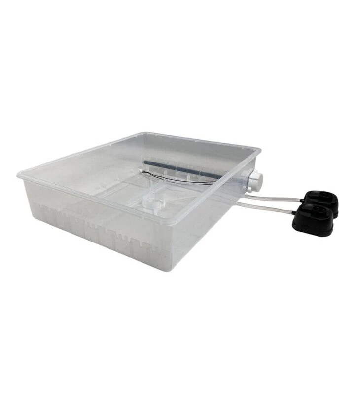 Ультразвуковой увлажнитель обеспечивает необходимую влажность без доливания воды вручную. Система вентиляции с двумя вентиляторами поддерживает одинаковую температуру по всему объёму. Через верхнюю крышку выводится избыточный CO₂, что улучшает воздухообмен. Нагрев осуществляется теновым шнуром - стабильно и без перегревов.