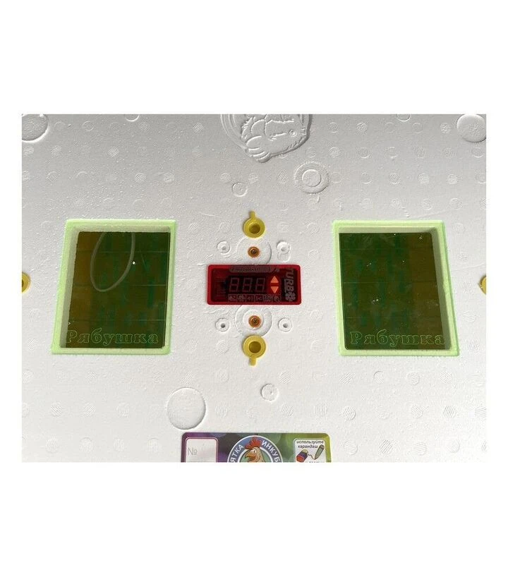 Инкубатор Рябушка Turbo 120 предназначен для бытового использования и вмещает до 120 куриных яиц. Имеет автоматический переворот с помощью подвижной сетки, приводимой в действие мотором. Количество переворотов можно настраивать - от 2 до 12 раз в сутки. Благодаря мощному вентилятору, который непрерывно обдувает турбину, обеспечивается равномерная циркуляция воздуха по всему корпусу. Обогрев осуществляется инфракрасным плёночным теном мощностью 50 Вт, расположенным сверху и снизу. Инкубатор поддерживает температуру автоматически, а её контроль отображается на цифровом дисплее.