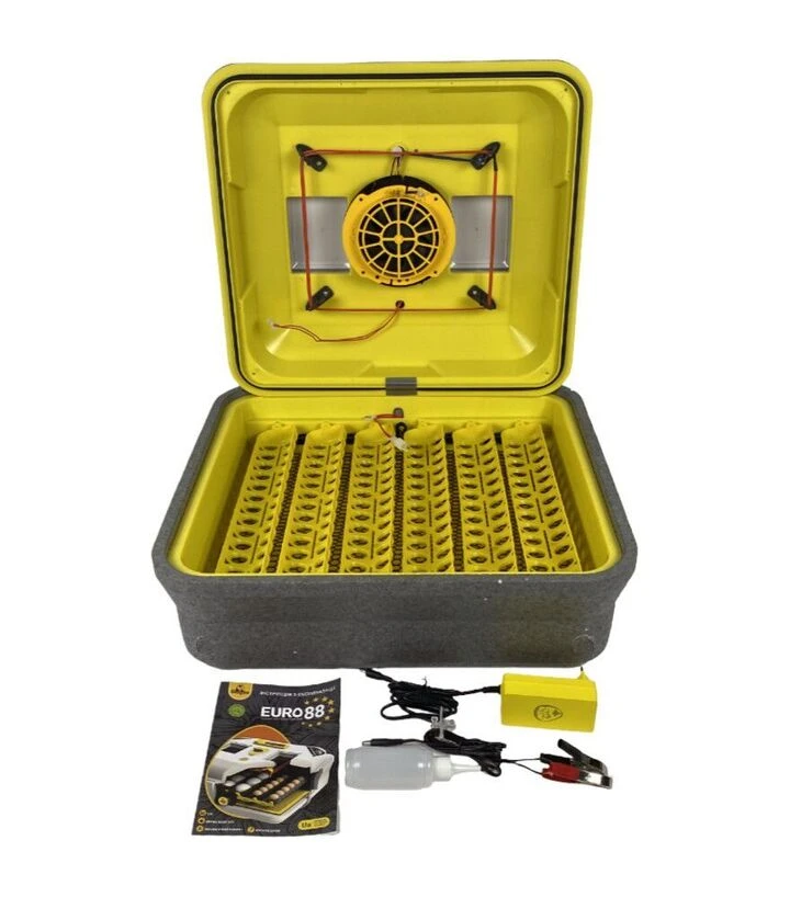 Модель Euro 88 PRO выделяется благодаря инверторному управлению, которое обеспечивает точную и плавную работу без температурных скачков. Турбовентилятор ускоряет циркуляцию воздуха, а встроенный счётчик дней позволяет вести контроль за инкубационным циклом. Внешний пенопласт хорошо удерживает тепло, а внутренний пластик не впитывает влагу и легко моется. Возможность питания от аккумулятора делает модель удобной для использования в условиях нестабильной сети.